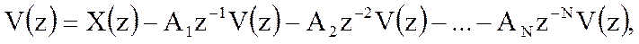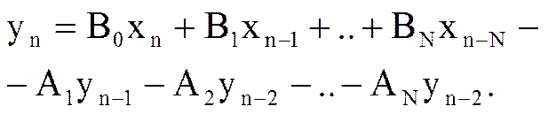 Знаки перед коэффициентами A в выражении для системной функции и в разностном уравнении (2.8) противоположны.