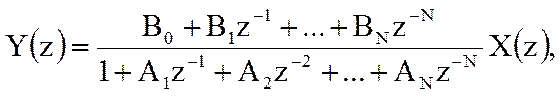 Системная функция цифрового фильтра в общем случае представляет собой дробно-рациональную функцию. Полином числителя описывает нерекурсивную часть фильтра, а полином знаменателя – рекурсивную.