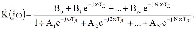 Сравнивая последнее соотношение с выражением для системной функции цифрового фильтра, можно сформулировать правило определения комплексного коэффициента передачи при известной системной функции фильтра: для нахождения комплексного коэффициента передачи нужно в выражении для системной функции заменить z на :