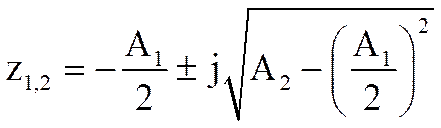 Для определения полюсов системной функции приравняем знаменатель нулю и найдем корни полученного квадратного уравнения