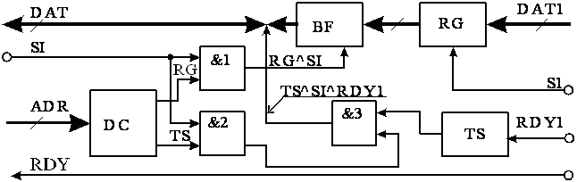 Аппаратная часть интерфейса реализуется на основе линий связи и логических узлов, входящих в каждое подключаемое к нему устройство.