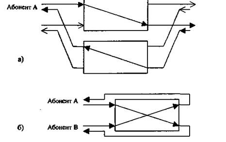 Рис. 3.22. Установление соединения через разделенное (а) и неразделенное (б) цифровое КП