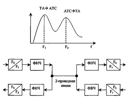Рис. 4.8. Упрощенная схема системы передачи с частотным разделением направлений