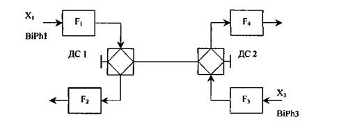 Реально реализованные системы этого класса имели несколько иную структуру, основным отличием которой было использование дифсистем, что позволяло уменьшить взаимное влияние направлений передачи (рис. 4.9.). Передача информации ведется бифазным кодом. В одном направлении X1 передача ведется кодом один период/символ, а в другом направлении Х3 - кодом три периода/символ.