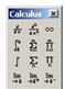 Окно MathCad имеет обычные для всех окон Windows панели инструментов. Кроме того, имеется специальная панель, при нажатии кнопок которой открываются дополнительные окна с инструментами MathCad (см. рис. 1):