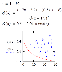 g1(x) = ; g2(x):=0.5+0.01x·cos(x).