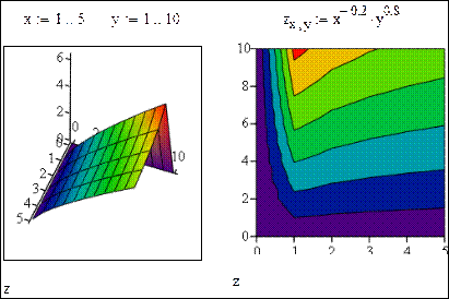 Задание 6. Построить поверхность и изолинии функции z(x,y) = x–0,2y0,8 для xÎ(1;5), yÎ(1;10):
