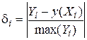 Линейная аппроксимация предполагает построение прямой y(x) = ax + b, проходящей через заданные точки. Коэффициент а можно получить с помощью функции slope(X,Y), свободный член получаем с помощью функции intercept(X,Y). Следует иметь в виду, что эти функции работают с упорядоченным по возрастанию массивом X. Для упорядочения обоих массивов воспользуемся следующим приемом. Числа Х запишем в нулевой столбец двумерного массива М, числа Y запишем в первый столбец этого массива. Затем следует воспользоваться функцией csort(M,0), осуществляющей сортировку массива М по возрастанию нулевого столбца. После этого отсортированные пары чисел снова переписываются в массивы X и Y. Теперь можно вычислить коэффициенты a и b. Для приведенного примера они получились равными 7,63 и –12,282. Таким образом, искомая аппроксимирующая прямая имеет вид у(х) = 7,63х – 12,282. В принципе можно считать, что поставленная задача решена. Однако можно еще построить график, подсчитать абсолютную погрешность аппроксимации по формуле Di = ïYi – y(Xi)ï, относительную погрешность по формуле .