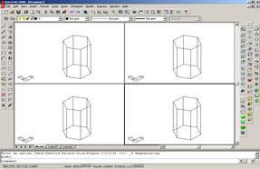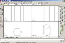 Изображения на созданных видовых экранах одинаковы и точно соответствуют изображению, которое было на экране монитора до разделения графического поля чертежа. Для получения проекций призмы необходимо настроить изображение на каждом из видовых экранов при помощи команд переключения видов. В любой момент времени один из видовых экранов в системе является активным, его рамка обведена толстой линией. Редактирование чертежа возможно только в пространстве активного видового экрана. Для того чтобы сделать активным любой из существующих видовых экранов, достаточно указать курсором на его графическое пространство.