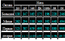Const f : array[1..7] of word = (523, 587, 659, 698, 783, 880, 998);