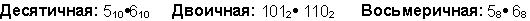 Ответ: 5 . 6 = 3010 = 111102 = 368.