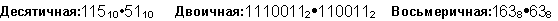 Ответ: 115 . 51 = 586510 = 10110111010012 = 133518.