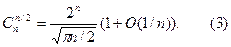 При фиксированном значении n максимального значения число сочетаний достигает при k = n/2 (вернее, для четного n максимум один и он указан, а для нечетного — максимум достигается на двух соседних значениях k: [n/2] и [n/2]+1). Поэтому особенно полезной оказывается следующая оценка для четных n [4] (очевидно, что при нечетных n отличия будут минимальными), основанная на формуле Стирлинга: