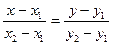 Пусть даны две точки А (х1,у1) и В (х2,у2), как известно на плоскости они однозначно определяют одну единственную прямую. Давайте вспомним, как выглядит общее уравнение прямой: Ах+Ву+С=0. Тогда если считаем что наша прямая задана точками А и В, то уравнение прямой проходящей через эти две точки выглядит так: . Если пользоваться данной формулой, то нам придется постоянно делать проверку на деление на ноль, что не очень удобно, чтобы это избежать, лучше использовать такое равенство: (х-х1)(у2-у1)=(у-у1)(х2-х1).