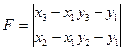 Помимо того, что рассмотренная нами с вами функция F позволяет определить взаимное расположение трех точек, а так же в случае, когда эти точки не лежат на одной прямой, определить по какую сторону третья точка расположена от прямой, она удобна еще и тем, что модуль значения этой функции (в случае, когда она не равна нулю) равен двум площадям треугольника, вершины которого расположены в исходных трех точках, то есть Sr=1/2|F|.