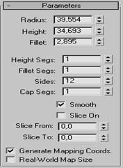 Ниже названия объектов, которые можем создать, выбираем из них ChamferCyl - цилиндр с закругленными краями.
