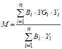 где n-это количество видов произведенной продукции; B[i]-объем производимой продукции i-го вида в данном периоде; m - это количество j-ых операций при произведении данного вида продукции; З[pj]-сдельная расценка за одну j-ую операцию по данному виду продукции.