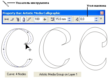 Режим каллиграфии — наиболее простой режим работы инструмента Artistic Media (Суперлиния).