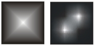 Рис. 4.15. Пример градиентной (слева) и сетчатой (справа) заливок одинаковых объектов