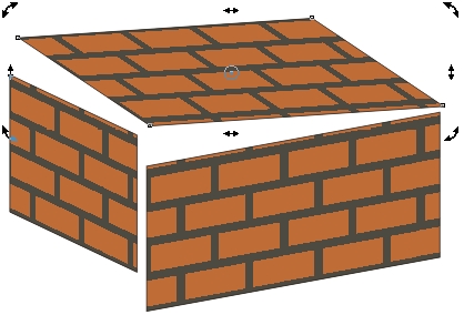 4. Остается совместить грани. Выделить левую грань и при нажатой клавише Ctrl перетащить ее вниз до совмещения с передней гранью. Затем два раза щелкнуть мышью на верхней грани и, перетаскивая левые стрелки скоса, совместить длинную сторону верхней грани с длинной стороной передней грани. Два раза щелкнуть на левой грани и, перетаскивая левые стрелки скоса, устранить оставшийся «зазор».