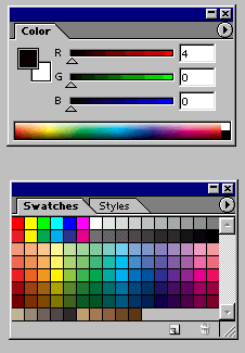 В программе имеется 13 палитр (13), которые можно перемещать по экрану и менять их группировку, принимаемую по умолчанию. Щелкните по вкладке (имени палитры) в группе палитр, и она станет самой верхней в данном стеке.