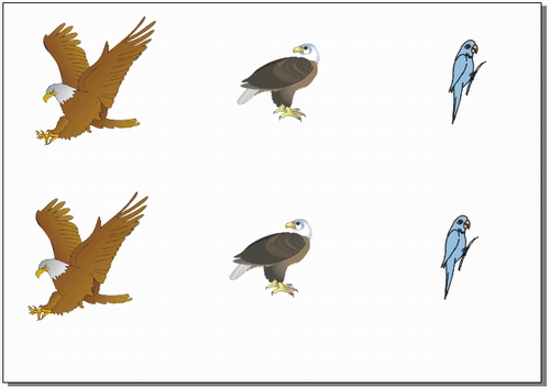 Рис. 11.12. Распределение с равными интервалами между объектами (сверху) и между центральными маркерами рамок выделения (снизу)