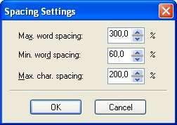Рис. 13.9. Элементы управления интервалами для простого текста во вспомогательном диалоговом окне