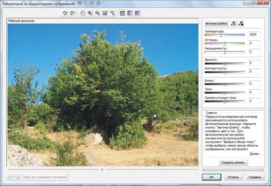 Откроем какую-нибудь фотографию. Изменим ее масштаб так, чтобы она поместилась на экране целиком. Вот что получилось, см. рис. 14.2. Затем выбрав Настройка > Лаборатория по настройке изображений мы получаем окно для улучшения нашей фотографии, см. рис. 14.3.