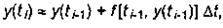 каждое очередное значение искомого решения на i-ом шаге представляют в виде ряда Тейлора, ограничиваясь первыми двумя членами разложения в ряд: