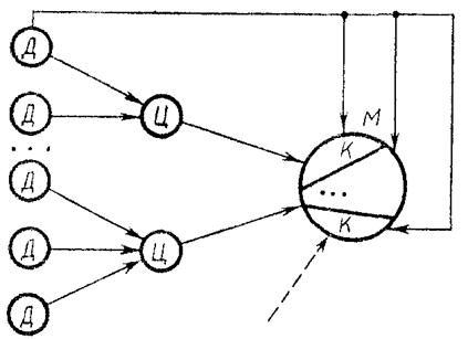 По отдельной совокупности исходных данных Д ставится цель моделирования отдельной стороны функционирования системы, на базе этой цели формируется некоторая компонента К будущей модели. Совокупность компонент объединяется в модель М.