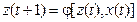 Следовательно, работа конечного автомата происходит по следующей схеме: на каждом t – ом такте на вход автомата, находящегося в состоянии z(t), подается некоторый сигнал x(t), на который автомат реагирует переходом на (t+1)– ом такте в новое состояние z(t+1) и выдачей некоторого выходного сигнала.