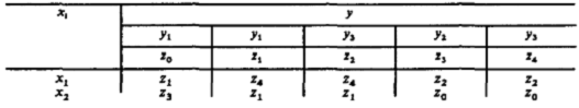 Табличный способ задания конечного автомата основан на использовании таблиц переходов и выходов, строки которых соответствуют входным сигналам автомата, а столбцы – его состояниям. При этом обычно первый слева столбец соответствует начальному состоянию . На пересечении -й строки и -го столбца таблицы переходов помещается соответствующее значение функции переходов, а в таблице выходов – соответствующее значение функции выходов.