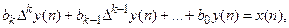 где x(n) – решетчатая функция входного сигнала; y(n) –решетчатая функция выходного сигнала, которая определяется решением уравнения (3.5); bk – постоянные коэффициенты;