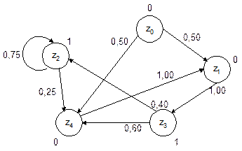 Требуется оценить суммарные финальные вероятности пребывания этого автомата в состоянии z2 и z3, т.е. когда на выходе автомата появляются единицы.