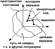 Множество возможных состояний системы (ГБД) называется пространством состояний (Рис.18). В реальных задачах пространство состояний велико, в этой игре оно равно (3*3)! = 362880. Доказано, что оно распадается на два подпространства, причем из одного нельзя попасть в другое начальными ходами. В нашем случае: 2*181440.