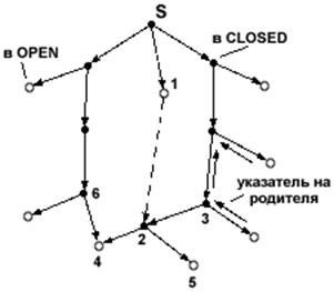 8. Переупорядочить список OPEN в соответствии с некоторой процедурой (выбираем новую перспективную вершину)