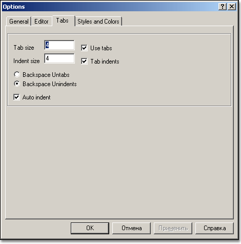 Backspace Untabs/Backspace Unindents – возможен выбор одного из вариантов. В случае, если выбран первый вариант, то при нажатии клавиши Backspace будет удален символ табуляции (если он присутствует). Если выбран второй вариант, то при нажатии на клавишу Backspace будет удален весь отступ целиком (может состоять из нескольких символов табуляции и пробелов).