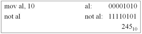 Отрицание. Инструкция not инвертирует все биты байта или слова. Имеет один операнд, изменяет его значение (рисунок 4.1).