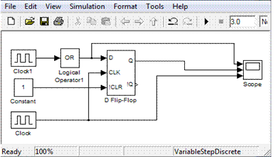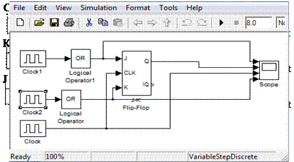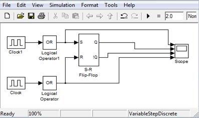 Блоки Logical Operator выполняют функцию согласования блоков Clock с информационными входами блока S-R Flip-Flop по типу данных.