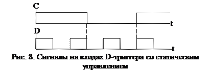 5. В соответствии с табл. 8 и временными диаграммами рис. 8 получить прогноз работы D-триггера со статическим управлением.