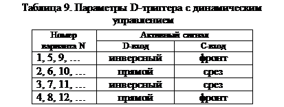 9. В соответствии с табл. 9 и временными диаграммами рис. 10 получить прогноз работы D-триггера с динамическим управлением.