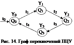 Для примера рассмотрим задачу синтеза ПЦУ, граф переключений которого имеет следующие параметры: