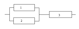 Система функционирует нормально, если исправен хотя бы один из блоков 1 и 2, а также исправен блок 3. Известны функции распределения времени безотказной работы блоков . Требуется найти вероятность безотказной работы системы в момент времени .