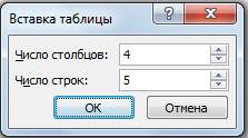 Рисунок 12 - Диалоговое окно Вставка таблицы