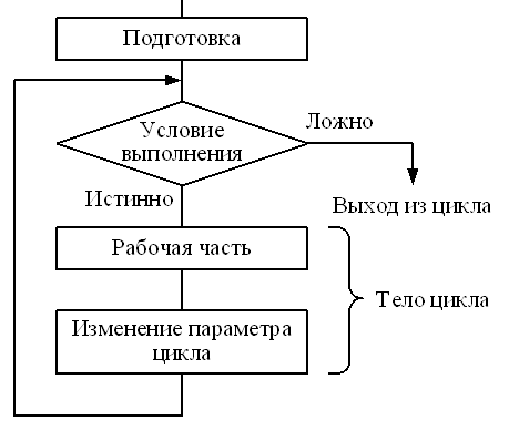 Общая схема циклического участка программы (алгоритма) может быть представлена в следующем виде на рисунке 6.1.