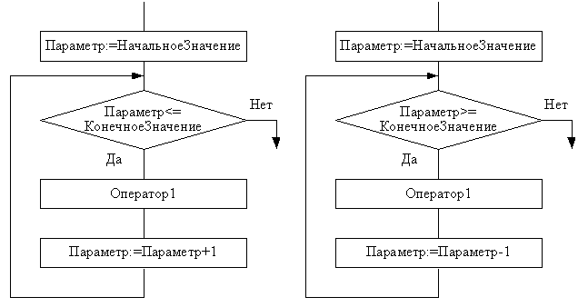 Оператор цикла работает в соответствии со схемами, приведенными на рисунке 6.2.