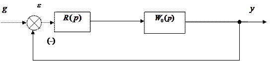 где E(p) и G(p) – соответственно изображения величины рассогласования и задающего воздействия; W(p) – передаточная функция разомкнутой системы, включающая в себя передаточные функции объекта регулирования W0(p) и регулятора R(p) (рис. 3.1).