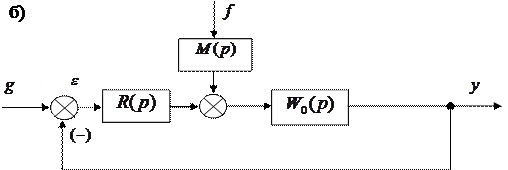 u – управление; f – возмущающее воздействие; M(p) – передаточная функция для введения в систему возмущения