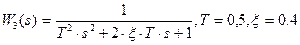 Блок, реализующий произвольные передаточные функции (W3) – Simulink – Continuous – Transfer Fnc. Передаточные функции вводятся при помощи набора коэффициентов числителя и знаменателя (в верхней строке числителя, в нижней знаменателя). В данном случае необходимо ввести: