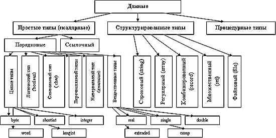 Перечень типов данных в языке Турбо Паскаль можно представить в виде следующей схемы:
